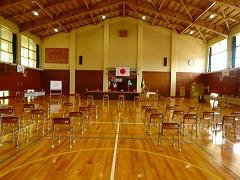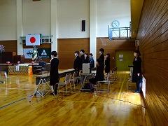 ↑ 式場は準備万端です。いよいよです。新型コロナウィルス感染拡大防止のため、ご来賓の皆様にはご列席を見合わせていただき、保護者の皆様には、人数の制限があります。津幡町で同一の対応を取らせていただきましたので、何卒ご理解のほどをお願いします。なお、学校前での見送りには、よろしければ、おじいちゃん、おばあちゃんもご一緒にどうぞ。