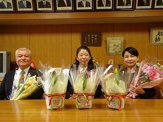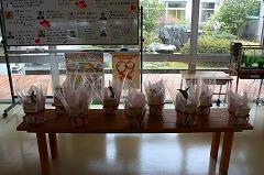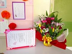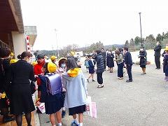 ↑ 笠野公民館さんからは、チューリップの鉢が贈られました。チューリップの咲くころは、中学校に入学している頃でしょう。チューリップの花を見ながら、地域の方の応援に感謝し、新しい生活をスタートさせてください。