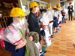 ↑笠野っ子35人で元気な挨拶をし、午後は授業カットで下校しました。しばらく会えませんが、体調管理をしっかりして健康を維持し、自分の力で学習を進めてください。今度会う日を楽しみにしています。