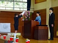↑ 私からは、心を込めて式辞を述べさせていただきました。お世話いただいた方々に感謝し、その心に答えるというのはどのような生き方なのか考えながら生きてください。6年生が下級生にお手本を見せるという強い決意で行動した誠実な姿が、笠野小学校の校風を磨き上げてくれました。卒業という節目に当たり、伝えたいことは、次の3つです「自分らしく個性を磨いてください」「果敢に挑戦する人生を歩んでください」「笠野小学校で、学んだことを誇りに思ってください。」令和最初の卒業生の皆さん「人々と美しく心を寄せ合い人生に花を咲かせてください。花は咲く時期がそれぞれに異なります。花が咲かないときは根を下へ下へと張ってください。次咲く花が大きく美しいものとなるために」(ノートりダム清心女子大学理事長であった渡辺和子氏の引用)夢に向かって力強く前進することを祈念しています。