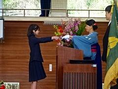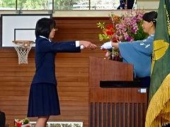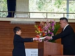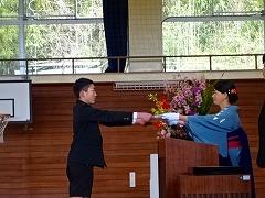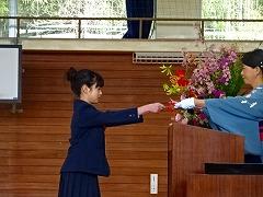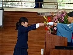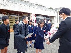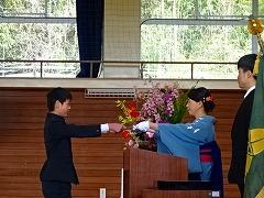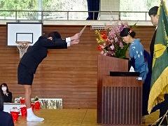 ↑ PTA会長様から、卒業記念品の9名の名前入りの写真フレームが贈られました。卒業生にありがとうございました。