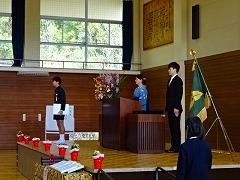 入学式、明け方までの雨もあがり、曇り空ではありましたが、色とりどりの春の花が咲く中、入学式を挙行いたしました。