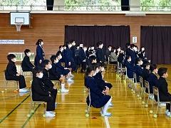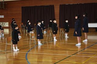 ↑ 初めての卒業式練習を1時間実施しました。凛々しい姿です。いよいよ卒業です。