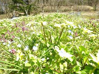 ↓ 足元では、美しいキンポウゲとおおいぬのふぐりが春の訪れを知らせてくれています。林の中からは、うぐいすが「ホーホケキョ、春ですよ」と教えてくれています。