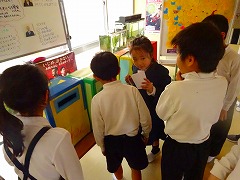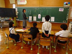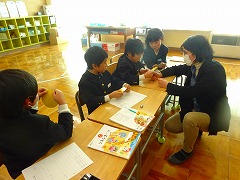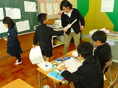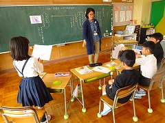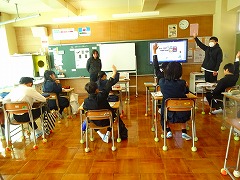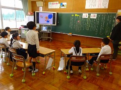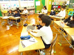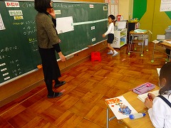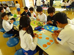 ↑5年 外国語活動 treasure(トレジャー)のありかにたどり着くよう英語で道案内しています。「たがいに伝え合う」活動は子供たちも生き生きしてきます。うまく宝を見つけることができたでしょうか。