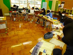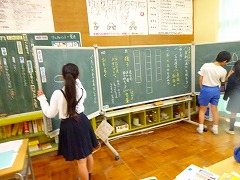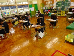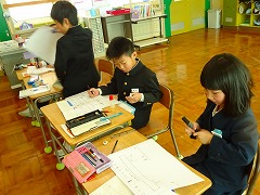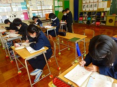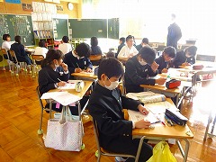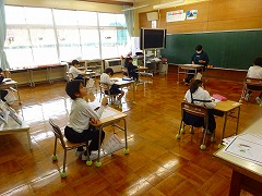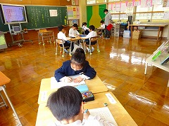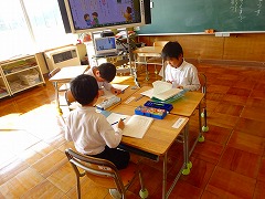 ↓ 朝学習と放課後学習は、それぞれの部屋で今の学年のまとめを頑張っています。放課後学習は、毎日20分活用問題にチャレンジしています。一人一人の状況を把握して補充できることは、小規模校の強みです。