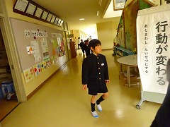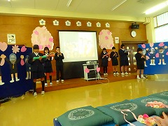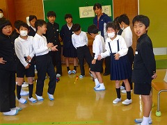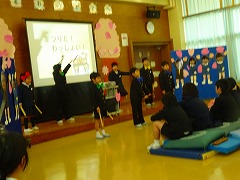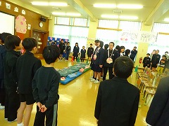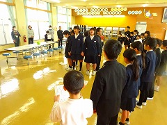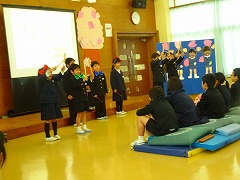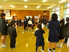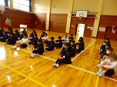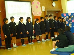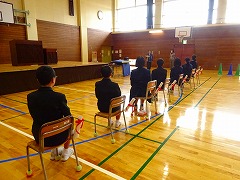 ↓ 在校生も、卒業式を心を込めてお祝いするために、合同練習を始めました。座り方やお辞儀の仕方、別れの言葉の練習をしました。6年生をお祝いする気持ちが、りりしい態度にしっかりと表れています。