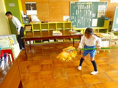 ↑ 全員で卒業式場の清掃をして、3,4,5年生で準備をしました。