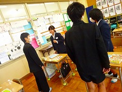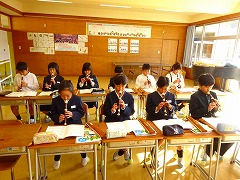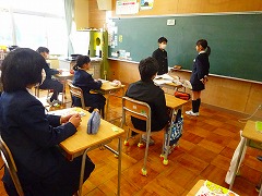 ↓卒業式後、教室で担任から最後の言葉をいただいているところです。