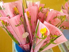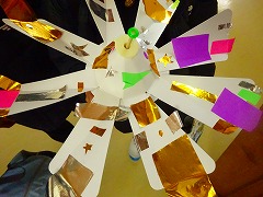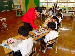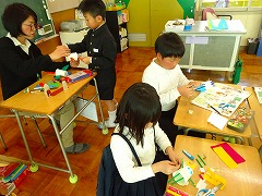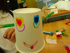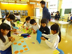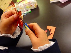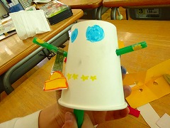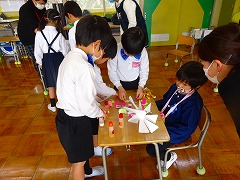 ↑ 1年 とても器用な1,2年生です。細かい作業ですが集中して、こんなにきれいな花が出来上がりました。何に使うのでしょうか?