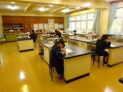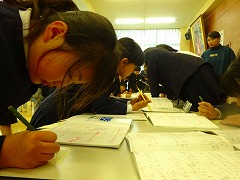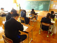 ↑ 3年理科 小規模校の強みを生かし、テスト直しも丁寧にしています。間違えたところは、再度チャレンジして、確実な力となるようにがんばっています。