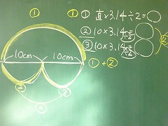 ↑ 5,6年複式算数 5年は円の性質を用いて正多角形を作図できるか考えました。今日は正八角形の描き方を考えました。「辺の長さがみな同じだから」、「中心の角度を八等分して」等の考えが出されました。理由をつけて説明する力が、ずいぶん育ってきました。「ここまでは分かるけれど、ここから分からなくなりました」と、自分の状況をしっかり伝える聞き手にも感心しました。
