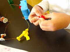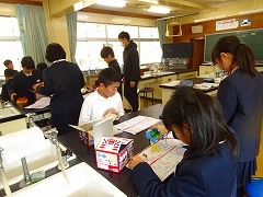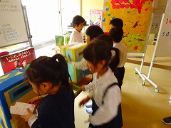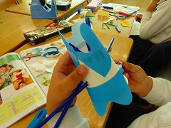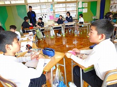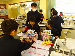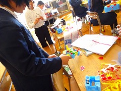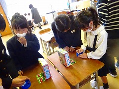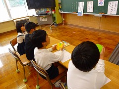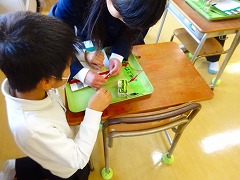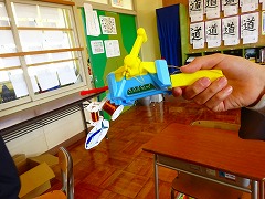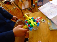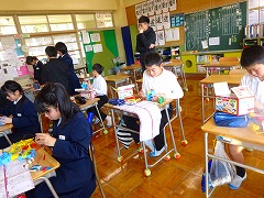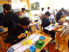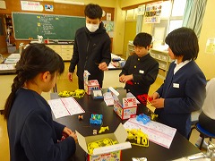 ↓ こちらは3年生の理科です。これまでの学習を振り返り、電池、磁石、ゴムの力を利用したおもちゃ作りに挑戦です。計画を立てて、発表会をします。1.2年生に発明したおもちゃで楽しんでもらうそうですよ。