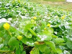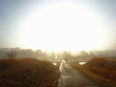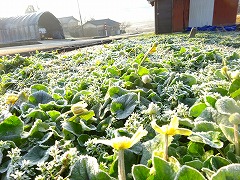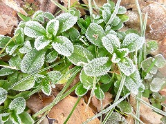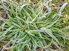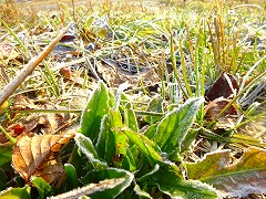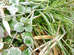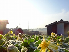 ↓ 今朝の笠野は白い朝です。葉の先の水滴は、霜になり、まるで金平糖のようです。それが朝日を浴びて、ダイヤモンドのようにキラキラ光っているのです。今朝も素晴らしい光景です。