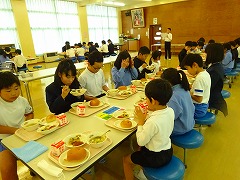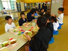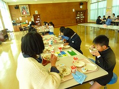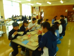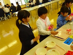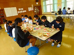 ↑インフルエンザ感染拡大予防のため、高学年は教室で食べました。
