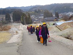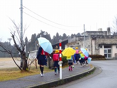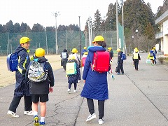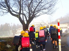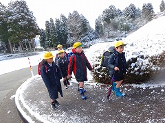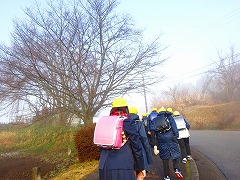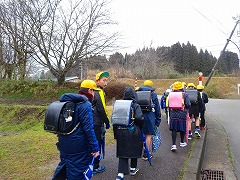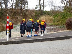 ↓ 本日から新しい笠野小がスタートです。5年生が最上級生です。6年生がいない集団登校ですが、新班長は先頭で班を率いて、また、副班長は後ろから見守ってくれています。