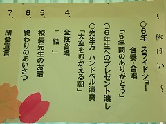 6年生が、「感謝を伝える会」を開き、笠野小の職員を招待してくれました。わざわざ、いいのですよ、と恐縮な気持ちで参加させていただきました。出席してみると、手作りの温かさが伝わり、きっとずっと心に残っているだろうなあと思いました。お招きにこちらこそ、感謝です。ありがとう。いよいよ卒業ですね。