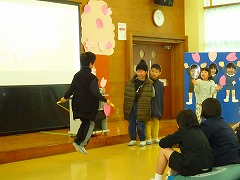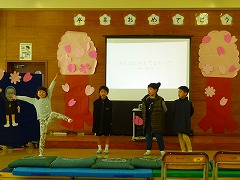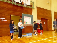 ↑ 世代間交流会がありました。2,3,4年生は地域の方と親しくなろうと、この会の準備を進めてきました。笠野の子供たちには、地域のためにできることをどんどんしてほしいと願っています。この世代間交流を通して、地域の方に元気と笑顔のプレゼントができたらと思います。このような機会を通して、「自分からかかわる力」をさらに磨いてほしいと思っています。本日は外も体育館も寒かったですが、心は温かくなりました。貴重な時間をありがとうございました。