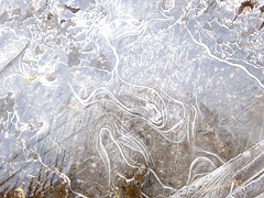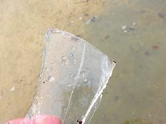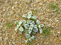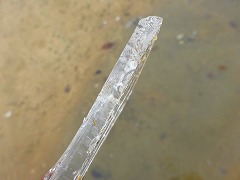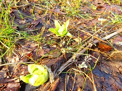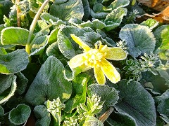↓一面の霜柱の中で、つくしが顔出しています。やはり、春ですね。