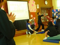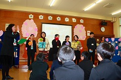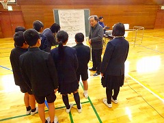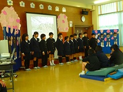 ↓ 卒業式の歌練習をしました。歌の先生に体育館で指導していただき、ユーモアを交えながら、歌い方のコツを教えていただきました。