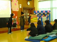 ↓ 昼休みは、金のがちょうさんがお話会を開催してくださいました。6年生は小学校最後のお話会となりました。6年間、たくさんの心に栄養をいただきました。素敵なお話や手遊びをありがとうございました。