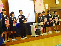 ↓修了式では、足元を見て、自然の美しさに気づき感動する心とやさしさを、大空を見上げて自然の偉大さに感動する心と大きな目標をもつ笠野っ子でいてほしいことを話しました。また、春休みは次の学年の準備期間です。読み・書き・計算を継続し、新学期をスムーズにスタートさせましょう。最後に、安全で規則正しい生活を送ってほしいことを伝えました。川やため池に近寄らない、交通事故にあわない、危険な遊びをしない、早寝・早起き・朝ごはん継続しましょう。