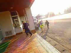↑ 美しい冬の朝焼けです。美しい雪景色の中を子供たちは元気に登校してきました。今朝の気温は氷点下でした。