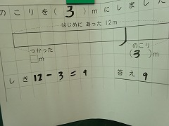↓ 2年算数 長い長さを1mものさしで実際に測定しました。竹物差しには数字が書かれていないので、初めは長さを測るのに少し戸惑いましたが、徐々に慣れてきました。生活の中で、長さの感覚をつかむことが、このような学習で培われていきます。