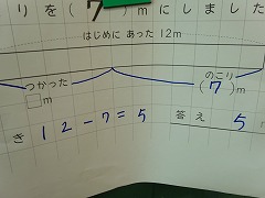 ↓ 2年 算数 こちらは、数直線で1めもりがいくつかを読み取っています。実際に書きながら伝わるように説明しています。