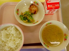 ↑ 全国学校給食週間 本日は「金沢の献立」です。甘えびのかき揚げ、加賀車麩の卵とじに、ほうれん草の辛し和えです。金沢の冬の旬AKB(甘エビ、かに、ぶり)の一つ甘えびは寿命も長く11年以上で、腰が曲がるまで長生きともいわれ、縁起の良い食べ物です。加賀車麩は、藩政期から保存食として食べ続けられ栄養価が高く、また、ほうれん草で鉄分も補うことができます。今日は昔から伝わる金沢の旬の食材を用いた給食を楽しみました。明日は、人気メニューの献立です。いったい何でしょうか、楽しみです。