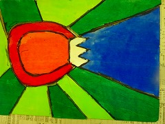 ↓ 3,4年生 図画工作 紙版画を刷りました。インクをたっぷりつけて、刷り上がりはどうかな?版画ならではの趣たっぷりの作品に仕上がりました。