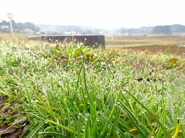 ↓ 今朝の笠野の草のつゆ、すごいです!草の先端には、みごとな水晶の水滴が一面についているのです。気温が高いので、霜にはなりませんが。太陽が高くなるとすぐに蒸発してしまいます。朝のほんのわずかな時間帯だけ、このような水晶のつゆが見られたのです。大発見です‼ 自然のみずみずしさが、心まで潤してくれます。