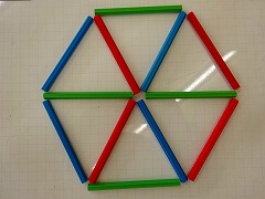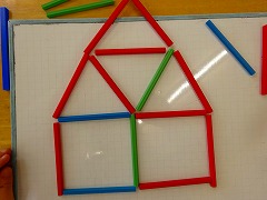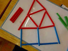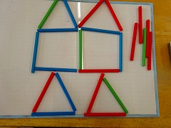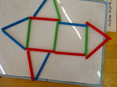 ↓ 1年算数 今日は点を結んで、形を作りました。