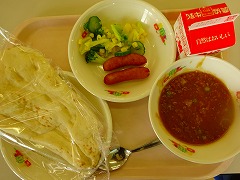 ↓ 今日の給食は、なんと「ナン?」とキーマカレーでした!