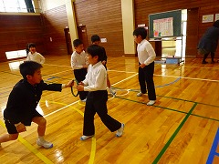 ↓ 長休みは、長縄8の字大会の練習で息を合わせました。中学年