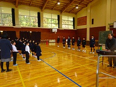 ↑ 卒業式の合同練習をしました。凛々しい姿を見せてくれています。