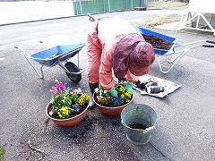 ↓ 今日は日差しの割には、大変肌寒い日でしたが、ボランティアHさんが学校の庭の手入れをしてくださいました。また、卒業式用にと、玄関には春のプランターを準備してくださいました。本当にありがといです。