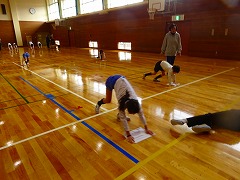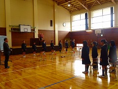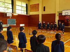 ↓ 在校生も、卒業式を心を込めてお祝いするために、合同練習を始めました。座り方やお辞儀の仕方、別れの言葉の練習をしました。6年生をお祝いする気持ちが、りりしい態度にしっかりと表れています。