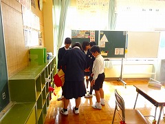 ↑6年生が使っていた下足箱も、数日前からピカピカに掃除をしてくれた6年生です。