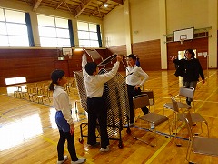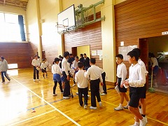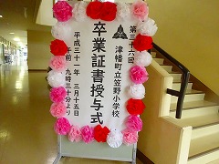 ↑ 全員で卒業式場の清掃をして、3,4,5年生で準備をしました。
