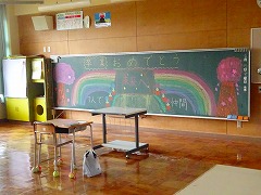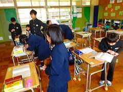 ↓2年生 来年度の見通しを持つために先生のお話を真剣に聞いています。 ↓1年生は 教室の整頓をしています。机の名前シールをはがし、新1年生が気持ちよく教室を使えるように整えました。掲示板には、新1年生がうれしくなるような掲示もしました。約2週間後には、もう入学式です。