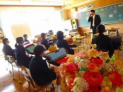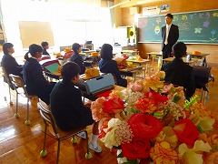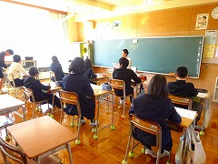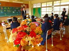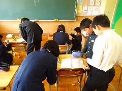 ↓卒業式後、教室で担任から最後の言葉をいただいているところです。