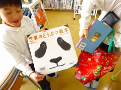 ↓ 1年生は春休み用の読書の本を4冊借りました。新書もあり大喜び、本を読むのが大好きな1年生です。1回といわず何度も読んでみましょう。新たな発見もありますよ。