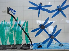 ↓ 3年生理科 昆虫の学習のまとめです。水中の卵からヤゴになり、成虫のトンボに羽化し、トンボは昆虫を餌として食べています。
