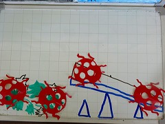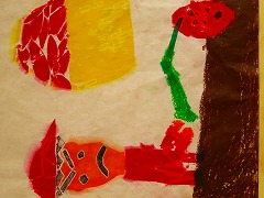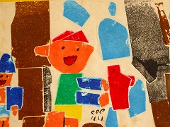 ↓ 3,4年生 図画工作 紙版画を刷りました。インクをたっぷりつけて、刷り上がりはどうかな?版画ならではの趣たっぷりの作品に仕上がりました。