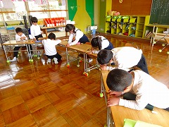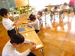 ↓ 朝学習と放課後学習は、それぞれの部屋で今の学年のまとめを頑張っています。放課後学習は、毎日20分活用問題にチャレンジしています。一人一人の状況を把握して補充できることは、小規模校の強みです。