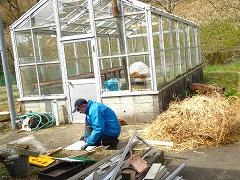 ↓ 校務員さんが、温室を整頓してくださっています。ありがとうございます。