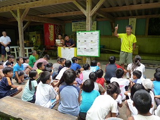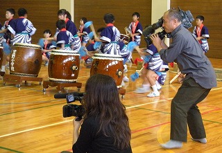 でんでこ太鼓の練習では、6年生が下の学年の子に優しく教えるシーン…
