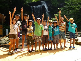 大滝の流しソーメンを食べ、滝の中で遊び、