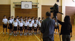 全校児童が、ニッコニコの笑顔で元気いっぱいに歌うシーン…